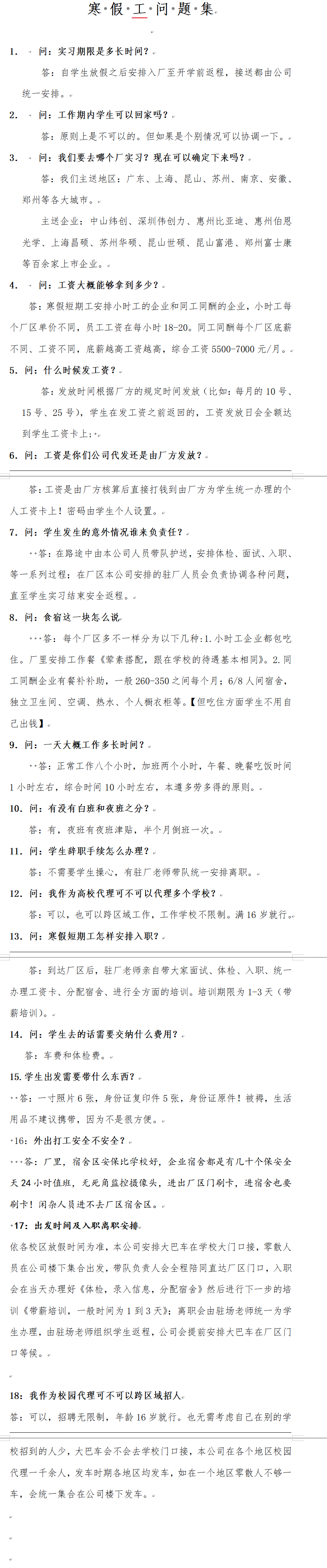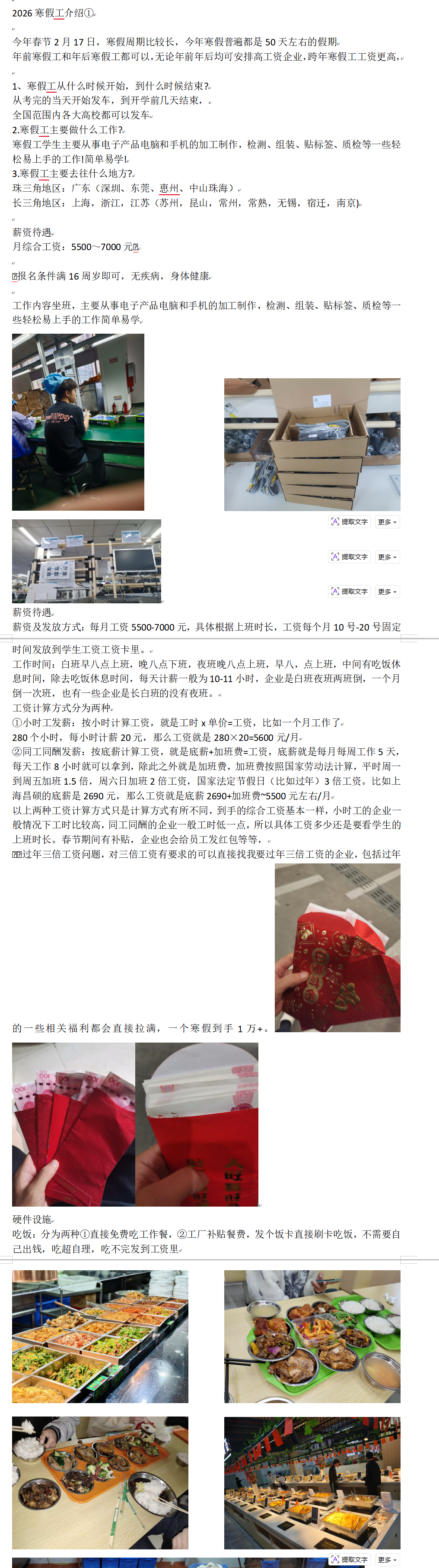 目前市面高价寒假工层出不穷,大家还需擦亮眼睛! 给不了你虚高的工价,但能给你最好的服务与保障!